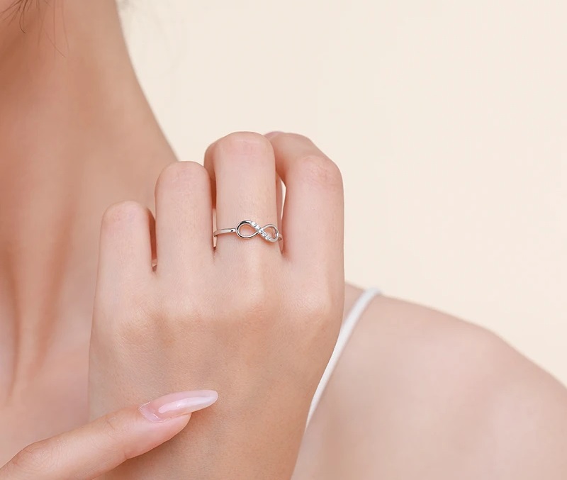 Anillo de compromiso en plata clásico infinito con rubíEste elegante...