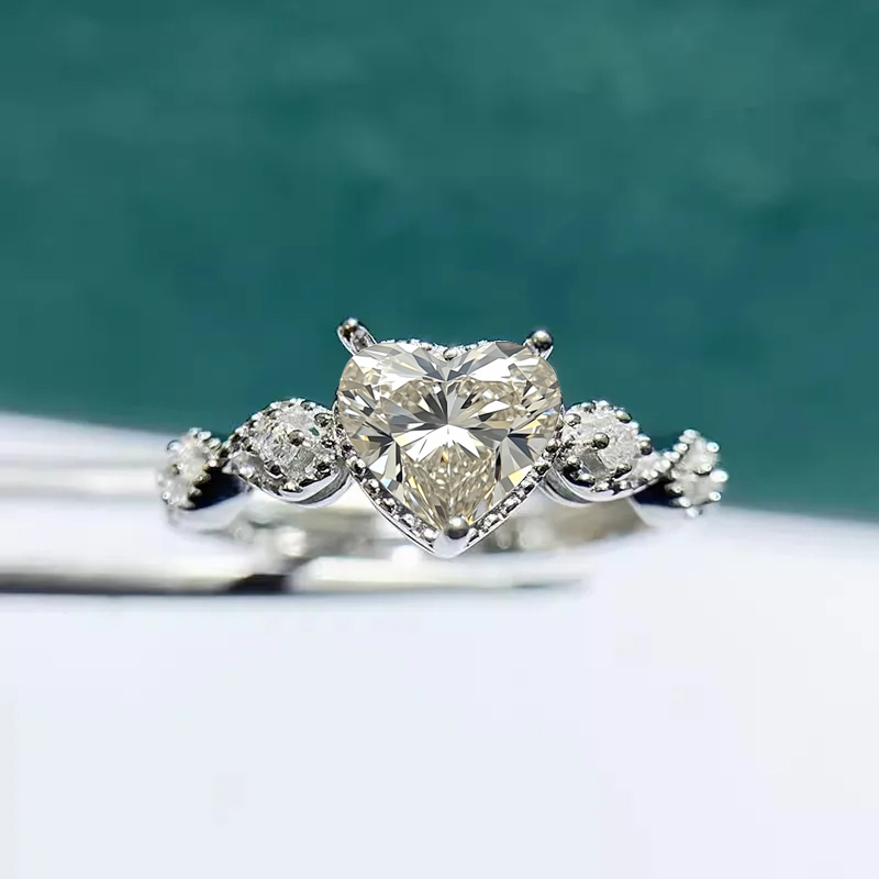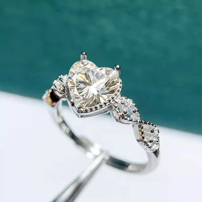 Anillo de compromiso en plata copo de corazones con moissanita...