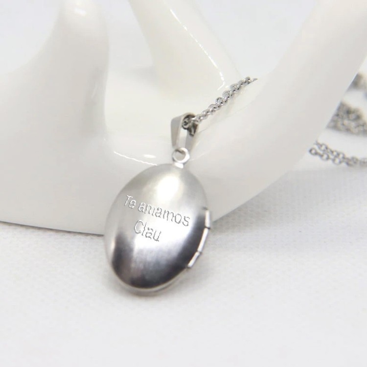 Collar relicario sobre con carta en acero inoxidable con grabado de...