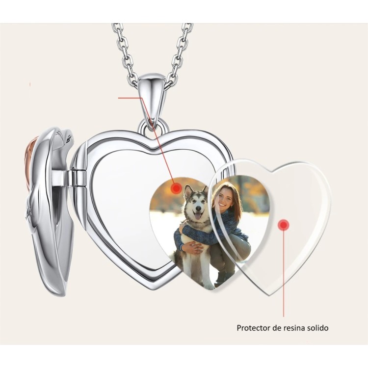 Collar relicario corazón en acero inoxidable con grabado de texto...