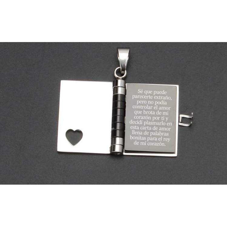 Collar relicario sobre con carta en acero inoxidable con grabado de...