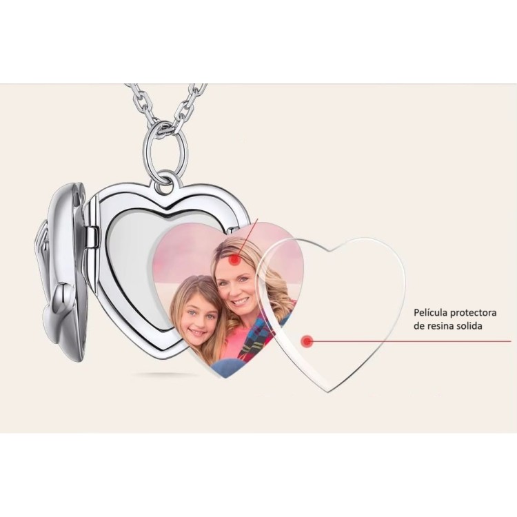 Collar relicario corazón acero inoxidable grabado texto